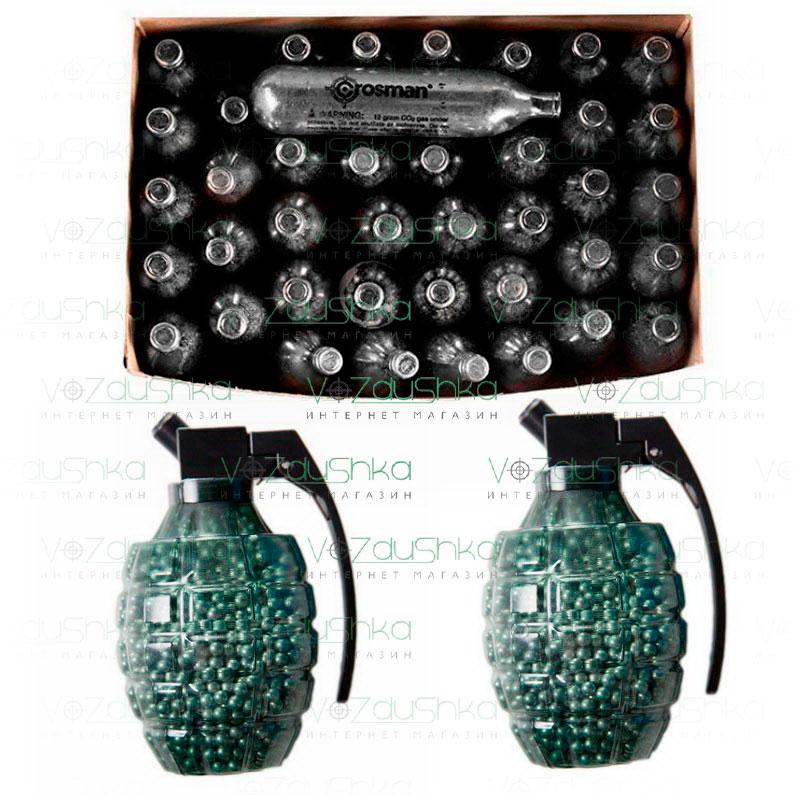 Інтернет магазин пневматичної зброї Воздушка пропонує купити кульки для пневматичної пістолета (2000 штук) в комплекті з 50 балончиками co2 для пневматики Crosman