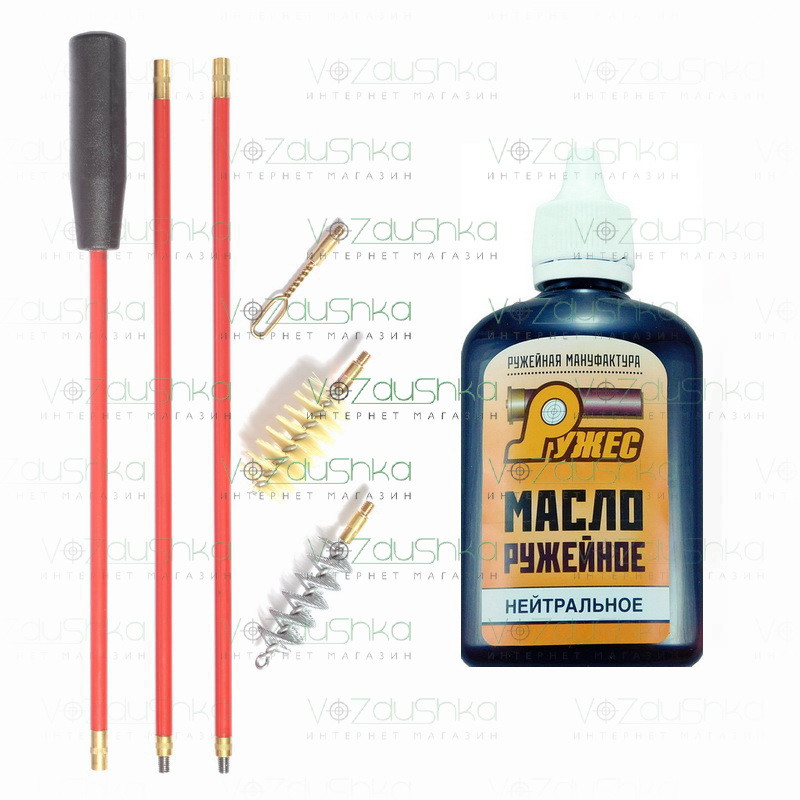 Інтернет магазин Воздушка пропонує купити комплект з набору для чищення рушниці 16 калібру та нейтральне масло Ружес 115 мл